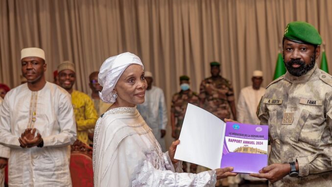 Le Médiateur de la République, Mme Sanogo Aminata Mallé a présenté et remis le vendredi dernier au palais de Koulouba, les rapports annuels 2023 et 2024 de sa structure au Président de la Transition, le Général d’armée Assimi Goïta. C’était en présence du Premier ministre, le Général de division Abdoulaye Maïga, du Président du Conseil national de Transition (CNT), le Général de corps d’armée Malick Diaw, des membres du gouvernement et des présidents des institutions de la République.
